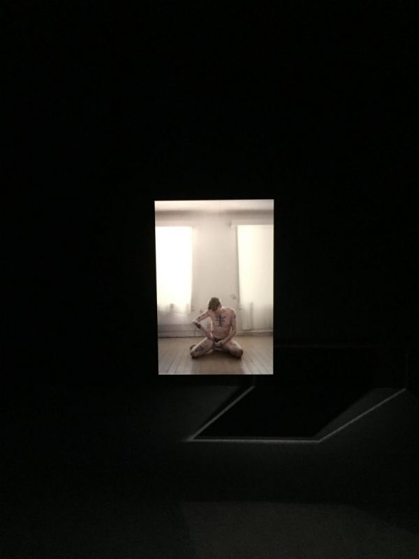 Hämärään tilaan muusta erilleen sijoitettu kuva, jossa Auer on saksien kanssa kumartuneena leikkaamaan penistään, kiteyttää paljon. Diy or Die.