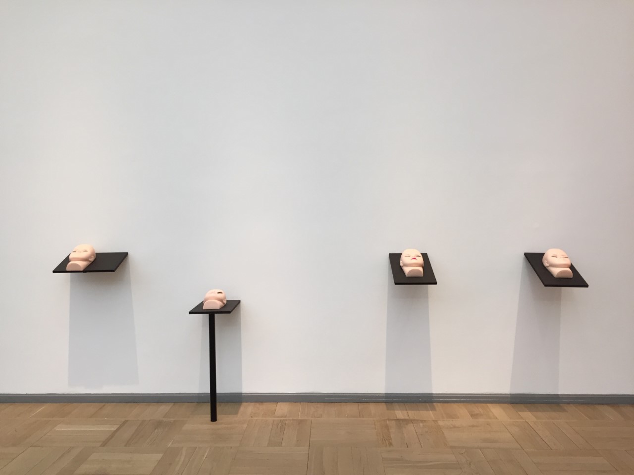 Myös Siibin videoteos Urban Symphony in E-minor (2018) on ollut aiemmin nähtävillä: Vana-Võromaa Kultuurikodassa ja Suomessa Sinnessä viime vuoden lopulla. Nyt se on saanut rinnalleen tuoreen videon Come And Go (2019) sekä kasvanut täyttämään tilan installaation muodossa. Seinän vierellä on meikkipäät lepäävät jalustoillaan kuin kauneushoitoihin asiakkaiksi asettuneina. Niiden ilmeettömille kasvoille on sivelty glitterluomiväriä, punaista huulipunaa tai uudet, uskomattoman pitkät ripset.