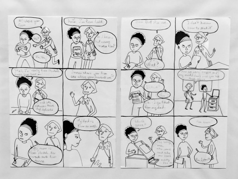 Ahmedin sarjakuvat kiteyttävät kipeitä ja teräviä huomioita siitä, miten suppeana kategoriana suomalaisuus liian monille yhä näyttäytyy. Musliminainen ei välttämättä kelpaa asiakaspalvelutyöhön mutta on kätevä lyömäase feministejä vastaan.